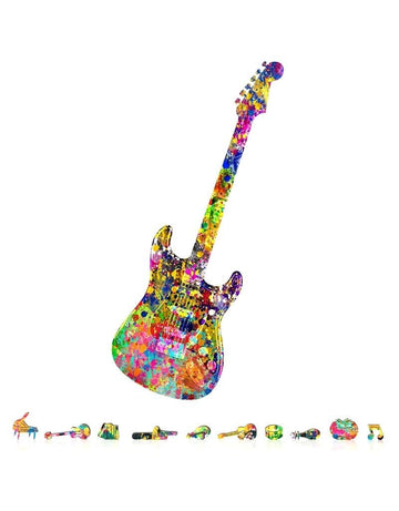 Splatter Guitar Wooden Puzzle, 200 Pcs 200-PIECE UNIQUE WOODEN PUZZLE: A guitar-shaped design puzzle with...