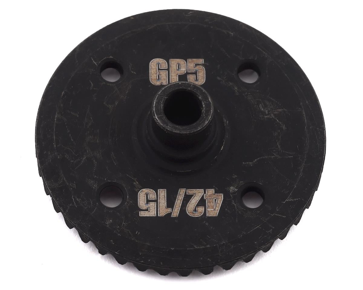 The Arrma GP5 42T Main Diff Ring Gear, is a replacement for the Arrma Felony and Infraction V2 models.    Features:    Machined from strong steel for long-lasting durability and consistent performance  Straight-cut tooth profile  42 precision manufactured gear teeth for smooth operation in extreme RC conditions  GP5 (gear profile) configuration to be used with GP5 Main Input Gear    Note:  Combine with ARA311016 - MAIN INPUT GEAR 15T GP5  Fits on ARA310433 - DIFF CASE SET (1pc)