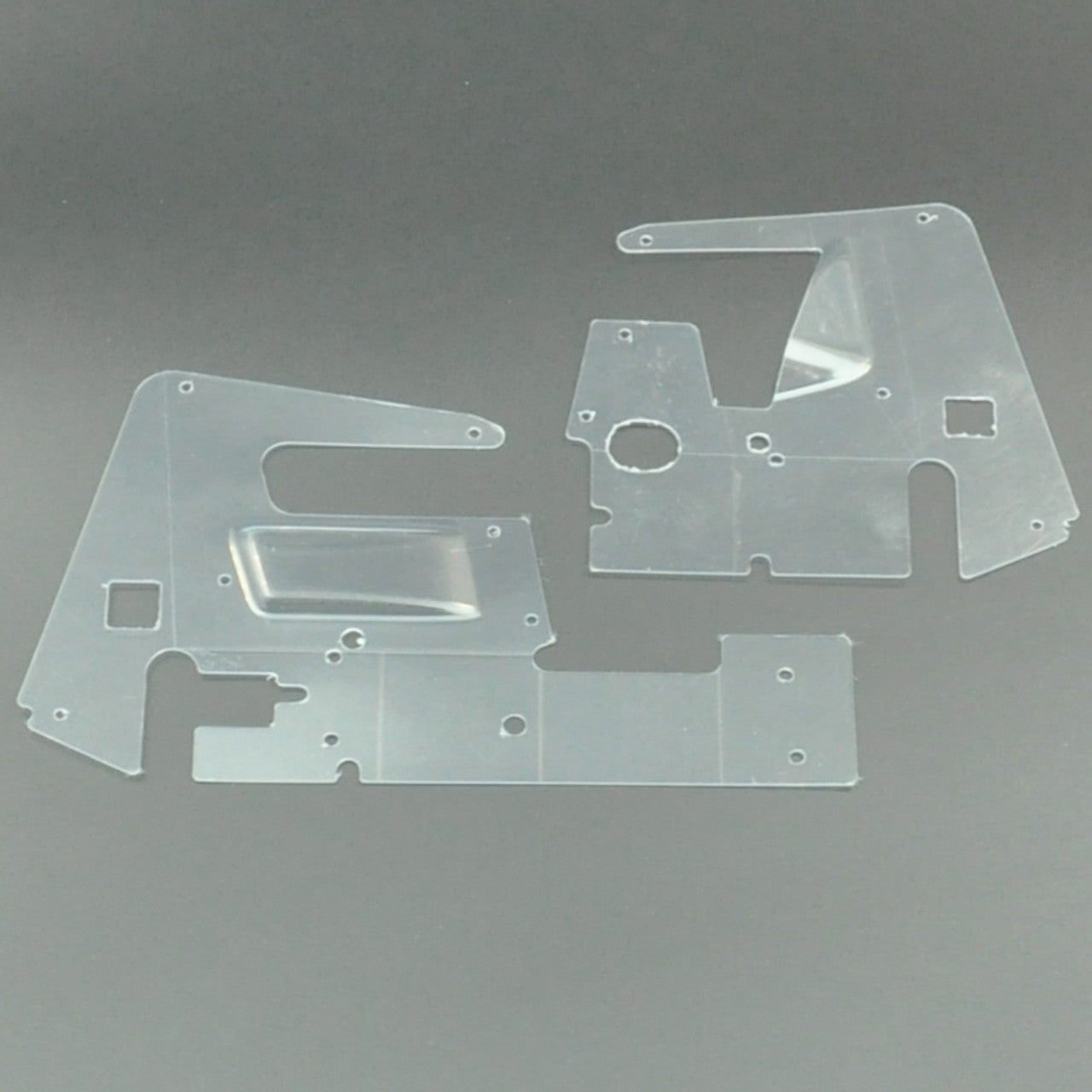 (1) Version 4.0 RH Side Panel, Clear  (1) Version 4.0 LH Rear Side Panel, Clear  Note: All polycarbonate pieces have a thin protective coating that needs removed after painting and before decal application. These side panels are not painted and are clear.