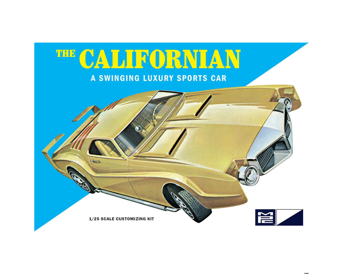 A SWINGING LUXURY SP0RTS CAR: MPC’s 1/25 scale Californian is the perfect project for custom car builders who are looking for a slick kit to tackle. Add it to your collection today! LOADED WITH CUSTOM GOODIES: The Californian is fully paintable and features an EXPANDED, authentically detailed, water-slide decal sheet—full of colorful options. Build this smooth rider with plenty of parts to choose from, including a front-wheel-drive engine, bucket seats, floating headlights, bold front grille, giant twin hood scoops, custom exhaust pipes, cantilevered rear spoiler, tinted roof panels, pad-printed tires, and more. Wrapped up nicely in replicated vintage packaging! THE PERFECT PRESENT: Don’t know what to get dad for his birthday? Or maybe you have an avid hobbyist or collector in your life. This model kit makes an ideal gift for any occasion! TRUST MPC: Like you, our MPC team are modelers and automobile enthusiasts. We sweat the details to make sure every model kit is top quality with lasting value and enjoyment. Features: 1:25 scale, skill level 2, paint & glue required 100+ parts Molded-in white, clear, transparent red, with chrome-plated parts Black vinyl tires Assembled scale: 8.75 inches long Ages 10+