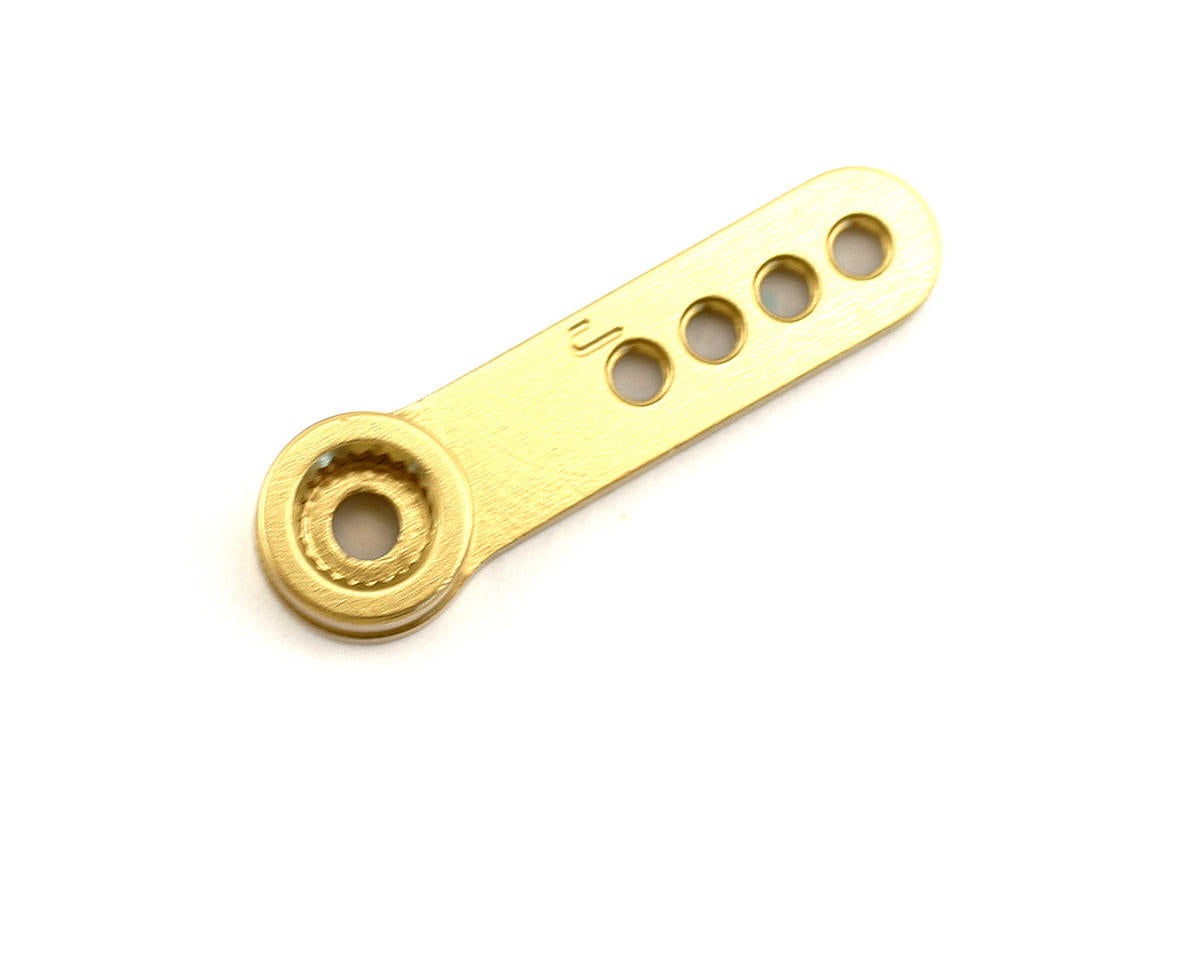 Hangar 9's precisely Machined Aluminum Servo Arms offer maximum steering control, as well as instantaneous throttle and brake response by eliminating the flex often associated with nylon and plastic servo arms. These 1/2 arms are drilled and tapped for 4-40 linkage hardware.    This package contains one JR, Airtronics or KO compatible servo horn.