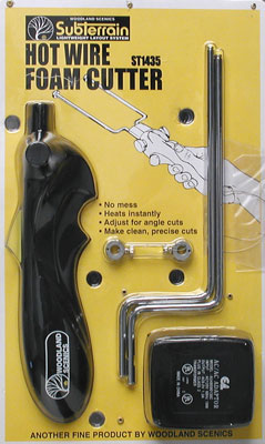 The Woodland Scenics Hot Wire Foam Cutter makes clean, precise cuts, adjusts for angled cuts and cuts a path 4 1/2 in w x 6 in d (11.4 cm x 15.2 cm). Use the included straight-rod option to cut in tight places and for faster cuts - straight rod cuts a path 3 1/2 in x 6 in (8.89 cm x 15.2 cm). Cutter heats instantly and leaves no mess.    The Hot Wire Foam Cutter Bow and Guide Attachment (purchased separately) adds versatility to the Hot Wire Foam Cutter and cuts a path 4.5 inches wide by 6 inches deep. Attach the Guide for precise angle cuts.    NOTE: Use only special nichrome replacement wire (WOOST1436). To avoid the emission of toxic fumes, Woodland Scenics recommends using the Hot Wire Foam Cutter and the Bow & Guide on Woodland Scenics foam products only. RoHS Compliant.  Foam Cutter Bow & Guide - Model Layout | Woodland Scenics     Features:  Adjustable collars for clean, accurate cuts  Woodland Scenics recommends using this cutter only on their SubTerrain white foam which emits no toxic fumes  Use only special Nichrome replacement wire (WOOST1436)
