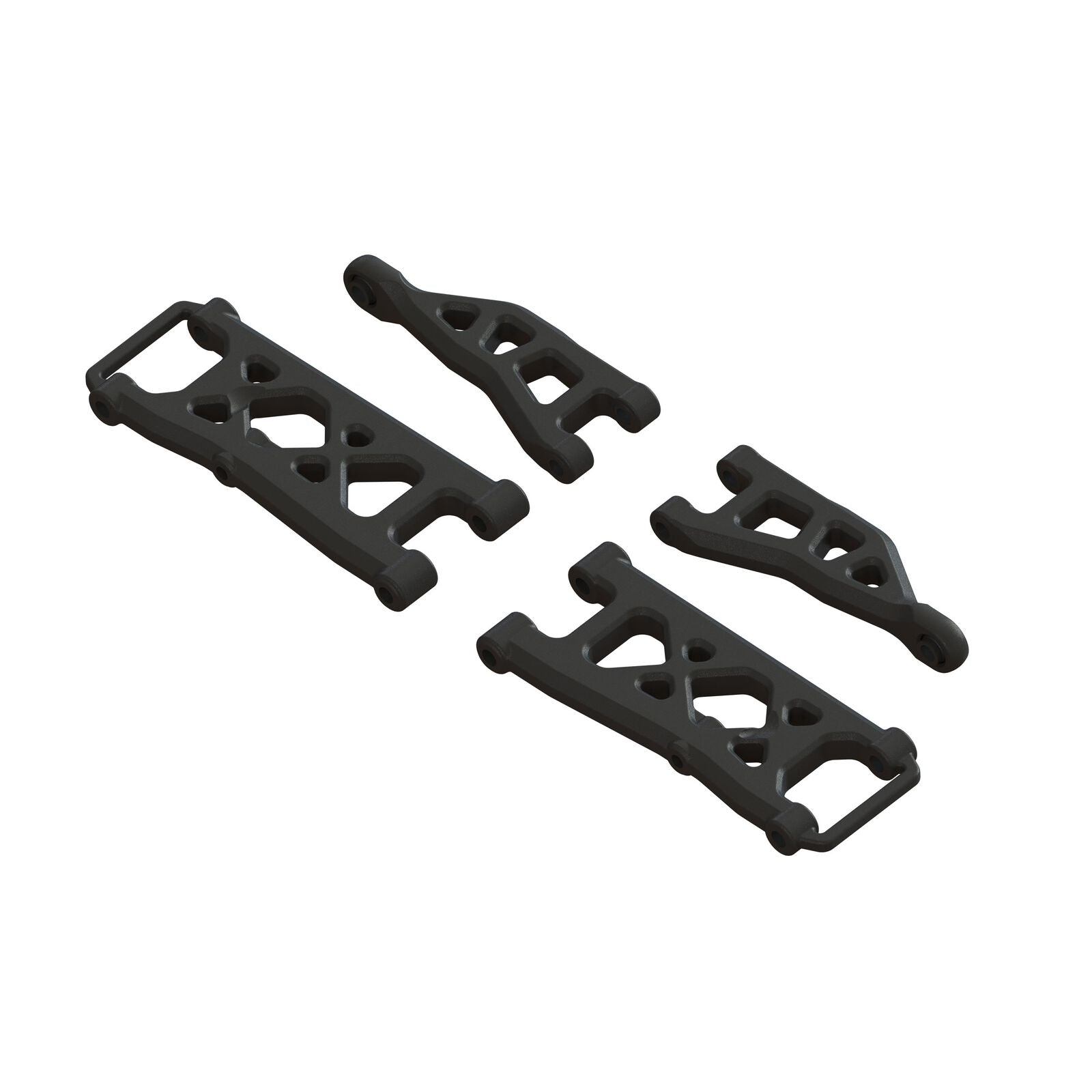 This Suspension Arm set provides an ideal replacement part for your ARRMA vehicle. Includes 2 x Upper Rear Suspension Arms 2 x Lower Rear Suspension Arms 2 x 4.8x4.9x2.5mm Balls Features Tough composite material for increased crash resistance and long