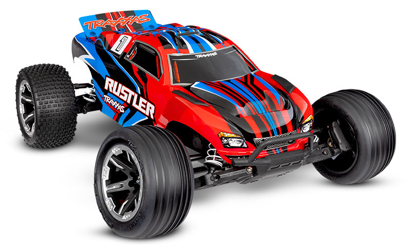 Includes:  (1) Traxxas Rustler HD 1/10 RTR 2WD Stadium Truck  (1) Traxxas TQ Transmitter  (1) USB-C Charger  (1) 7-Cell 8.4V 3000mAh NiMH Battery  Needed To Complete:  (1) 45-Watt USB-C Power Adapter  (1) USB-C Power Cable  (4) AA Batteries for Transmitter