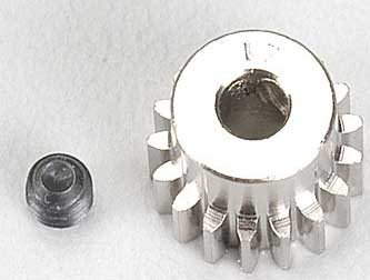 These Robinson Racing Products 48 Pitch Pinion Gears are precision cut alloy steel gears that feature a hard nickel coating for durability. The pinions have an 1/8" bore, are stamped with the tooth number for easy identification and include one 5-40 set screw. These gears are available in a variety of tooth count options to fine tune the torque and top speed of your vehicle.