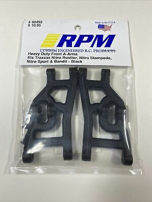 RPM sets the standard in the R/C industry for durability and all out rugged performance. Our Traxxas Nitro Rustler, Nitro Stampede, & Nitro Sport A-arms are built to stand up against the toughest abuse from the backyard basher all the way to the top-level racers. Our A-arms incorporate all stock geometry; yet have been redesigned for strength, looks, performance, and durability. We build these A-arms from our well-known trademark blend of nylons for bulletproof performance and unsurpassed durability. They carry our reputable warranty against breakage as well. These A-arm sets are sold in pairs and come in either black or our extremely popular blue, which is molded into the A-arm for scratch resistant color that lasts and lasts.