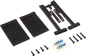 This is an optional pair of RPM Mud Flaps Traxxas Slash (RPM Bumpers only) These are the RPM Mud Flaps for use on the RPM Bumpers designed for the Traxxas Slash. FEATURES: Rubber construction Black in color INCLUDES: Two Mud Flaps Two Support Arms Two Screw Supports Four 3x10mm Buttonhead Screws Four 3x16mm Buttonhead Screws Instruction Sheet COMMENTS: Works only with the RPM Slash Rear Bumpers.