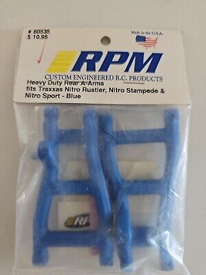 Our Traxxas Nitro Rustler, Nitro Stampede, & Nitro Sport rear A-arms are as tough and as durable as it gets. Our A-arms incorporate all stock geometry; yet have been redesigned for strength, looks, performance, and durability. Our rear A-arms have been designed to lower the A-arm’s center of gravity without affecting ride height or stock geometry for better handling characteristics as well. In addition, RPM Nitro Rustler & Stampede rear A-arms are actually lighter than stock components! These A-arms carry our reputable warranty against breakage and are molded from our trademark blend of nylons for bulletproof performance and unrivaled durability. These A-arm sets are sold in pairs and come in either black or our extremely popular blue, which is molded into the A-arm for unparalleled scratch resistant color.