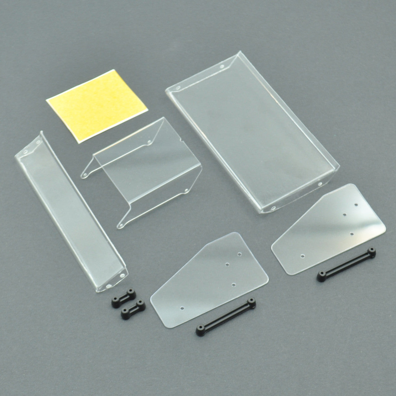 Includes: (1) Wing Main Center Section, Clear (1) Wing Secondary Center Section, Clear (1) RH Wing Sideboard, Clear (1) LH Wing Sideboard, Clear (1) Wing Mount, Clear (2) Lower Nut Plate (2) Upper Nut Plate (1) Wing Mount Tape