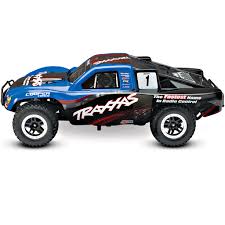 This is the Traxxas Nitro Slash 3.3 1/10 2WD RTR Short Course Truck with an included TQ 2.4GHz Radio System, TSM (Traxxas Stability Management), EZ-Start Engine Starter, EZ-Start Battery, DC Battery Charger and blue body. CHARGER NOTE: The included charger requires a cigarette lighter socket found in full size vehicles to charge. If this is not your preference, Traxxas offers an adapter allowing you to charge from a standard home AC electrical socket (TRA2976). Traxxas Nitro Slash Drops in at the Sunken City ">As only Traxxas can, heavyweight horsepower is combined with a lightweight 2WD chassis to deliver astounding performance and over-the-top fun. The award-winning TRX 3.3 engine gives the Nitro Slash tire-melting thrust that is far more than any driver needs--and exactly what every driver wants. It takes Traxxas-Tough durability and a stout drivetrain to handle the TRX 3.3’s outrageous output. Nitro Slash delivers with proven components that have made the Slash the standard for durability, and fun. The extra large capacity of the 150cc fuel tank keeps the action running longer between fill ups and the exclusive EZ-Start electric starting system makes starting as easy as pressing a button. Traxxas Stability Management Traxxas Stability Management (TSM) allows you to experience all the extreme power, speed, and acceleration that was engineered into your E-Revo making it much easier to control on common slippery surfaces. Punch it off the line and TSM goes to work sensing the vehicle’s direction and making steering corrections to provide straight-ahead full-throttle acceleration without fishtailing, spinouts, and loss of control. TSM also works during cornering, first making intuitive corrections to maintain your line, and then allowing you to hammer the throttle earlier in the turn for much faster exit speeds. Braking is dramatically improved as TSM works to keep you arrow straight until you come to a complete stop. Features: Traxxas Stability Management High-revving TRX 3.3 Racing Engine for proven championship-winning horsepower and speed TQi 2.4GHz radio system Officially Licensed Race Replica Bodies: Mark Jenkins Edition (#25 Traxxas), Chad Hord Edition (#9 BOSS Snowplow), Robby Gordon Edition (#7 Speed Energy), and Traxxas Blue Edition Scale dimensions and looks of actual short course off-road race trucks Scale front and rear tube-style bumpers 50+ mph top speed out of the box Large capacity 150cc fuel tank extends run time High-torque steering and throttle servos High-volume dual-stage air filter Double deck 6061-T6 aluminum and composite chassis Enclosed receiver box protects against water and fuel Integrated throttle servo mount with air filter support Magnum 281 transmission with ball bearings Large diameter disc brake Tuned pipe exhaust system EZ-Start push-button electric starting Planetary differential with steel gears Heavy-duty driveshafts Rubber-sealed ball bearings SCT chrome-center wheels with color-molded beadlock-style trim ring Nitro Slash is backed by unparalleled Traxxas support and parts availability Specifications: Length: 22.24 Inches (565mm) Front Track: 11.65 Inches (296mm) Rear Track: 11.65 Inches (296mm) Weight (no fuel): 5.76lbs (2.61kg) Height (overall): 7.40 Inches (188mm) Wheelbase: 13.07 Inches (332mm) Front Shock Length: Long Ultra Shock Rear Shock Length: XXLong Ultra Shock Front Tires: Slash SCT 2.2" (Pre-Glued with Inserts) Rear Tires: Slash SCT 2.2" (Pre-Glued with Inserts) Front Wheels: 2.2" Short Course Race Replica Rear Wheels: 2.2" Short Course Race Replica Wheel Diameter: 2.2 Inches (56mm) Outer; 3.0 Inches (76mm) Inner Gear Ratio: 2.81 Transmission: Nitro Magnum 281 Differential Type: Steel Composite Planetary Chassis Structure/Material: 2.5mm, 6061-T6 Blue-Anodized Aluminum Brake Type: Steel Disc with semi-metallic pads Drive System: Shaft-Driven 2WD Steering: Bellcrank with integrated servo saver Radio System: TQi 2.4GHz with TSM Engine (fuel-powered): TRX® 3.3 Racing Engine with EZ-Start® Fuel Tank Capacity: 150cc Top Speed: 50+mph Skill Level: 4 Included Accessories: EZ-Start Power Cell 2-amp Peak Detecting Fast Charger Fuel Bottle Extra Glow Plug Air Filter Precision Tool Set Needed To Complete: (8) "AA" Batteries Nitro Fuel